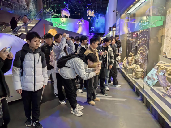从远古海洋展厅到今日海洋展厅,从郑和宝船模型前的“和平远航”研讨到北洋水师战舰残骸旁的“海疆经略”反思,指导老师依托展品,带领学生触摸海洋战略的历史根脉,感知海洋实践的当代力量,深刻理解“海洋生态保护”在国家海洋战略中的核心地位,清晰梳理出中华民族“向海而兴、背海而衰”的历史逻辑。“以前在课堂上抽象的‘海洋强国’概念,在看到郑和船队‘云帆高张’的复原场景时变得具体可感。”参与学生感慨道。