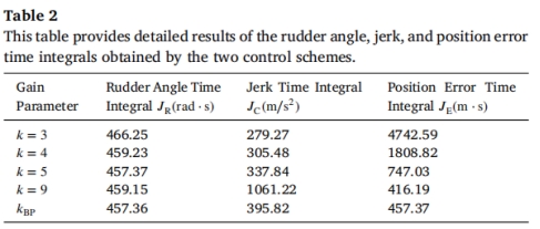在此基础上,研究进一步考虑了传统轨迹跟踪控制中往往被忽视的航行安全问题。通过引入舵角变化与冲击度(Jerk)等指标,构建了兼顾位置误差和平稳性的多目标性能评价函数,使控制策略更加符合实际航行需求。